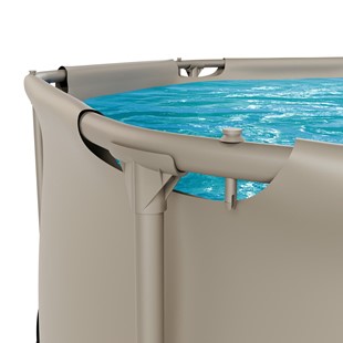 Solidny stelaż stalowy utrzymuje odpowiednią formę basenu nawet przy pełnym napełnieniu, zapewniając bezpieczeństwo i komfort użytkowania. Trójwarstwowe PVC zwiększa odporność na rozciąganie i uszkodzenia, co przekłada się na długą żywotność i bezproblemowe korzystanie przez całe lato.