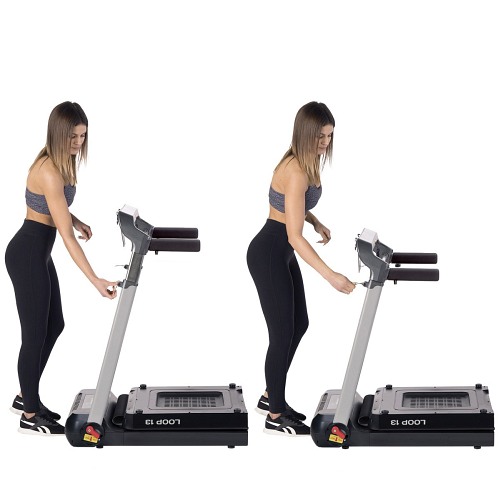 Bieżnia LOOP13 to rewolucja, w kwestii minimalnych rozmiarów sprzętu do treningu cardio. Bieżnię składa się i rozkłada w ciągu zaledwie jednej minuty a po złożeniu, długość bieżni wynosi niewiele ponad 1 metr. Te niespotykane, niewielkie rozmiary dają możliwość, posiadania urządzenia cardio, nawet w niewielkim mieszkaniu. LOOP13 zmieści się bowiem pod łóżko czy do szafy.