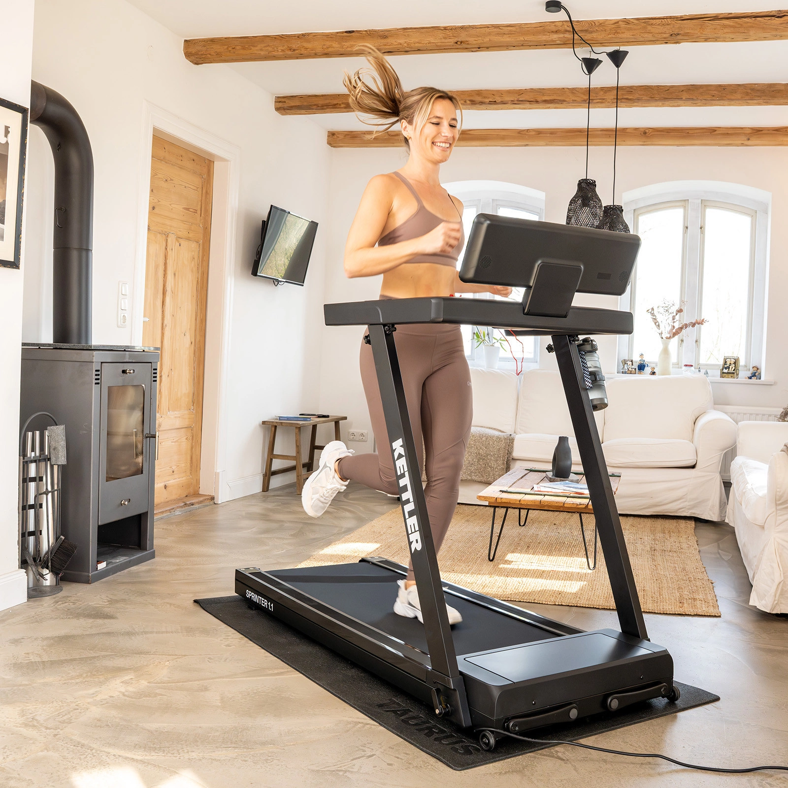 Kettler Sprinter 1.1 to idealne rozwiązanie dla osób, które chcą trenować regularnie, ale nie mają miejsca na duży sprzęt fitness. Ta bieżnia została zaprojektowana z myślą o domowych warunkach - jest lekka i składana na płasko, dzięki czemu po treningu z łatwością wsuniesz ją pod łóżko lub za szafę.