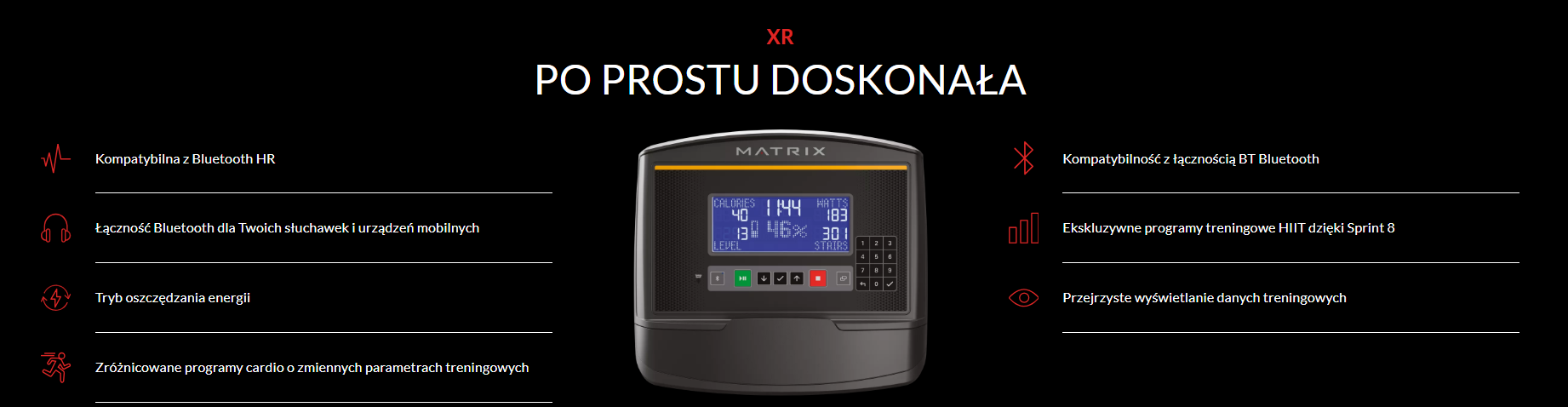 Wchodząc na bieżnię, chcesz poczuć moc, swobodę i profesjonalizm — i właśnie to gwarantuje Matrix TF50. To urządzenie stworzone z myślą o ambitnych użytkownikach, którzy oczekują zarówno najwyższej jakości wykonania, jak i komfortu treningu w własnych czterech ścianach. Marka Matrix już od lat jest obecna w salach fitness i klubach sportowych — teraz możesz poczuć tę jakość u siebie.