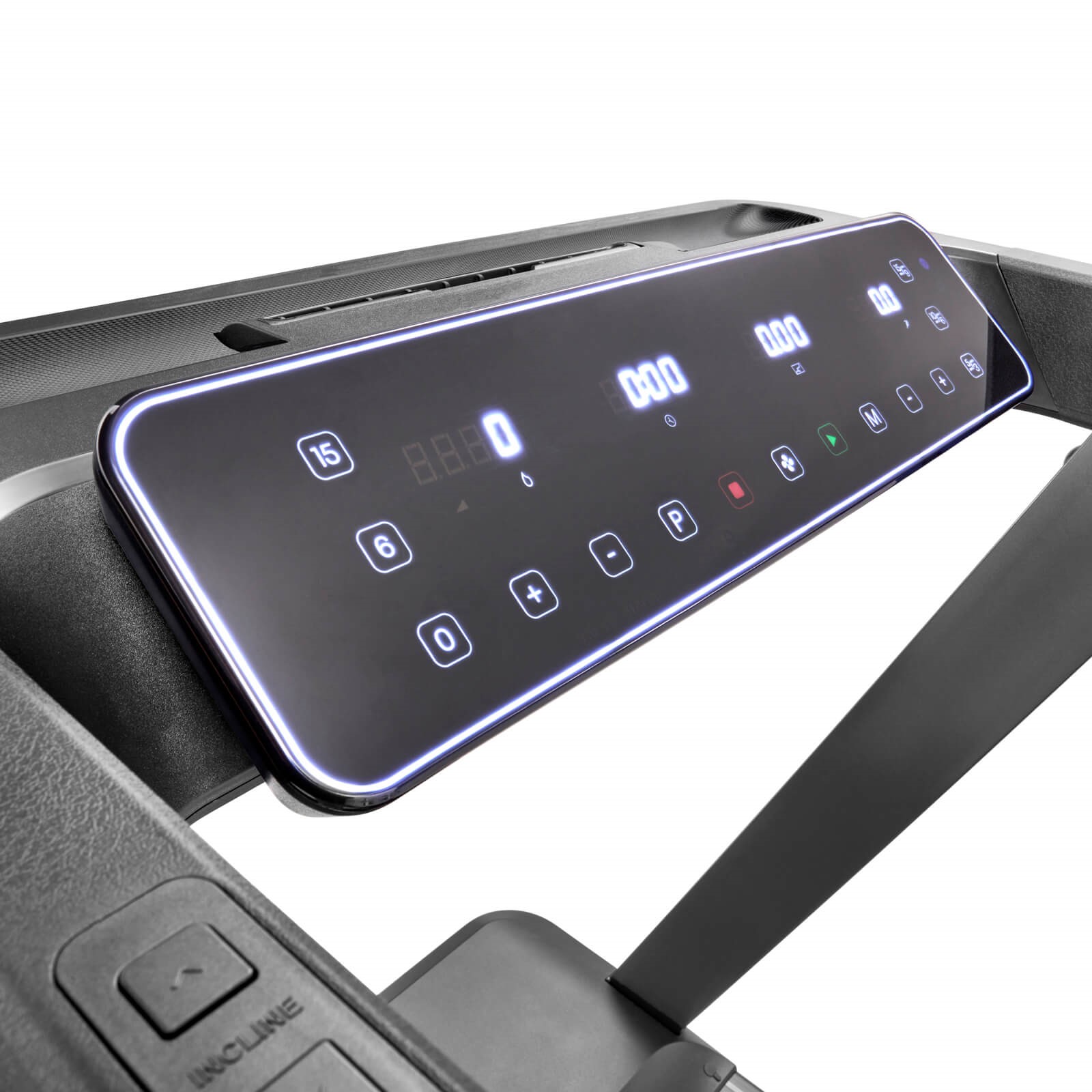 Biegacz ma pełną kontrolę nad swoim treningiem. Za pomocą jednego przycisku może wybrać jeden z 15 poziomów nachylenia, czy 32 programów treningowych. Odkryj jeszcze więcej, synchronizując FR20 z aplikacją Reebok Fitness, aby otworzyć cały świat wirtualnych tras biegowych i wyzwań. W utrzymaniu tempa pomogą Ci ulubione utwory muzyczne ze zintegrowanych głośników lub seriale i filmy z tabletu, ustawionego na półce na akcesoria. Postęp jest śledzony za pomocą wąskiej konsoli LED z szeregiem wskaźników na żywo, w tym prędkości, dystansu, czasu, kalorii, tętna i innych. Dalsze dane można śledzić i analizować za pomocą kompatybilnej aplikacji Reebok Fitness App, stworzonej aby pomóc biegaczom w osiągnięciu postępów w treningu i osobistych celów.