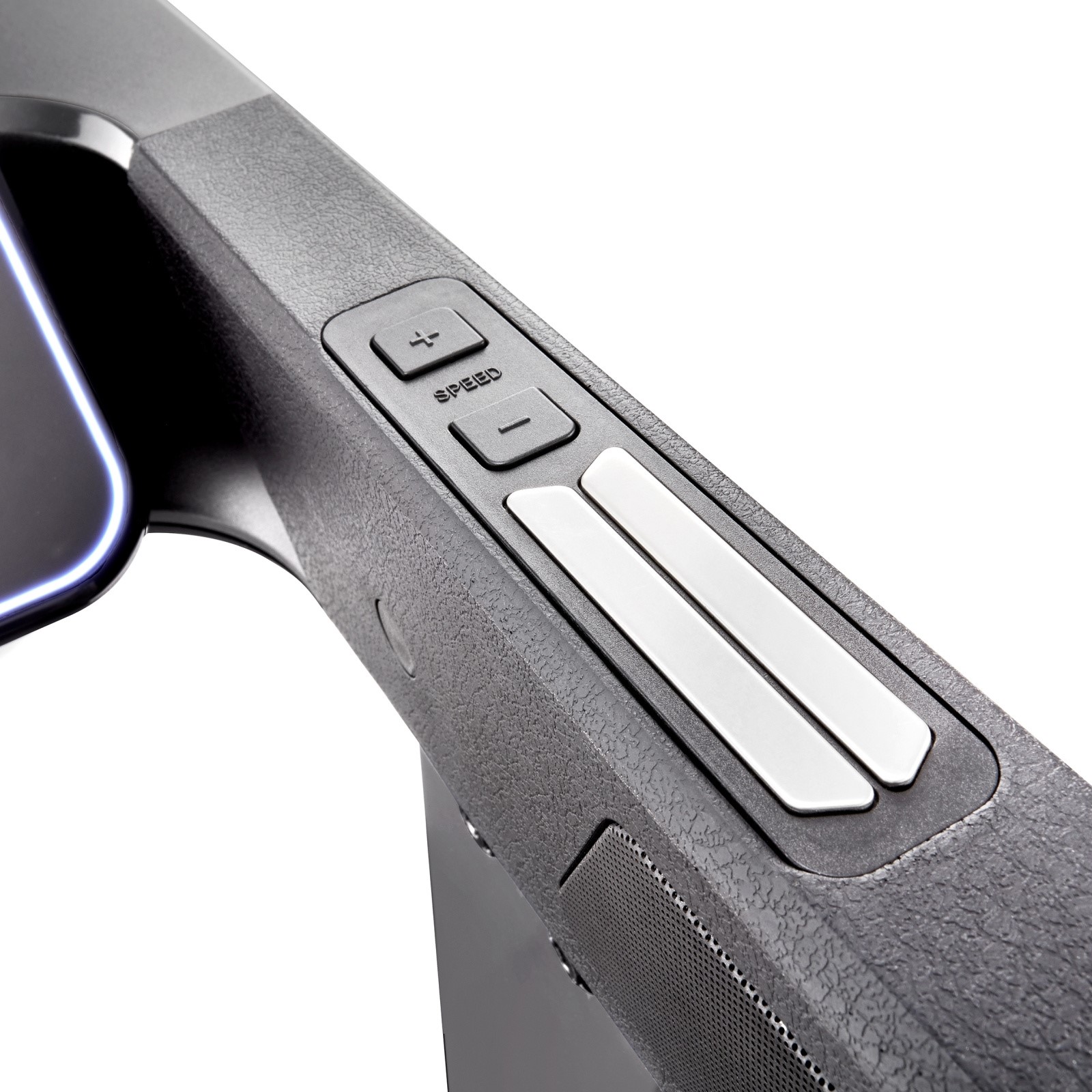 Biegacz ma pełną kontrolę nad swoim treningiem. Za pomocą jednego przycisku może wybrać jeden z 15 poziomów nachylenia, czy 32 programów treningowych. Odkryj jeszcze więcej, synchronizując FR20 z aplikacją Reebok Fitness, aby otworzyć cały świat wirtualnych tras biegowych i wyzwań. W utrzymaniu tempa pomogą Ci ulubione utwory muzyczne ze zintegrowanych głośników lub seriale i filmy z tabletu, ustawionego na półce na akcesoria. Postęp jest śledzony za pomocą wąskiej konsoli LED z szeregiem wskaźników na żywo, w tym prędkości, dystansu, czasu, kalorii, tętna i innych. Dalsze dane można śledzić i analizować za pomocą kompatybilnej aplikacji Reebok Fitness App, stworzonej aby pomóc biegaczom w osiągnięciu postępów w treningu i osobistych celów.