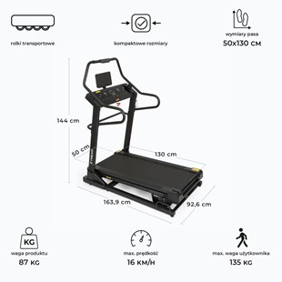 | Wymiary pasa biegowego | 130 x 50 cm |