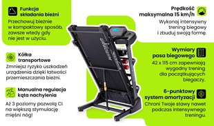Funkcja pauzy wprowadzona w 2025 (bieżnia kupiona wcześniej jej nie posiada) - możliwość tymczasowego zatrzymania treningu bez utraty dotychczasowych postępów
