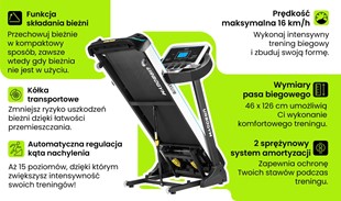 | Wymiary pasa biegowego | 126 x 46 cm |