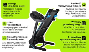 | Wymiary pasa biegowego | 126 x 45 cm |