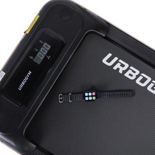 Bieżnia UrboGym Zuno oferuje nietypowe i bardzo wygodne rozwiązanie w postaci opaski sterującej typu smartwatch. Dzięki niej możesz zmieniać ustawienia bieżni bez konieczności schylania się czy przerywania marszu. Sterowanie z poziomu nadgarstka sprawia, że obsługa urządzenia jest intuicyjna i komfortowa.