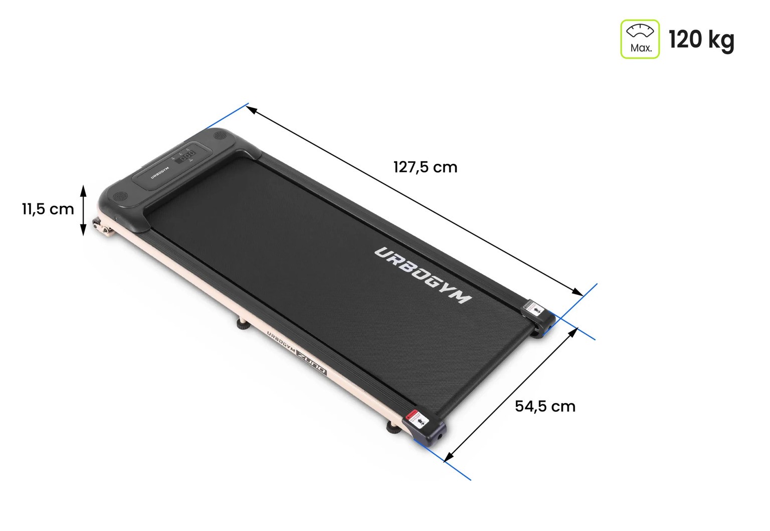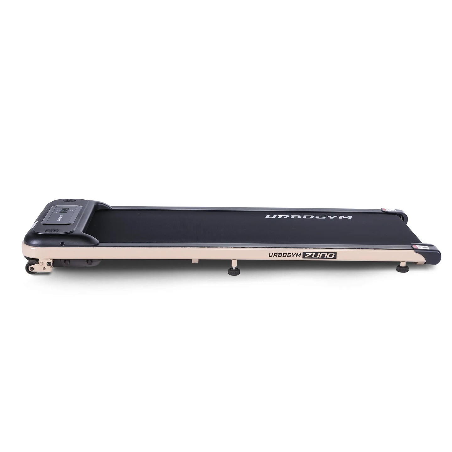 Jednym z największych atutów modelu UrboGym Zuno jest wyjątkowo niski profil. Bieżnia ma zaledwie 115 mm wysokości, dzięki czemu można ją łatwo wsunąć pod łóżko, kanapę lub szafę. To rozwiązanie idealne do mieszkań, w których liczy się każdy centymetr przestrzeni. Kompaktowa forma pozwala korzystać z urządzenia wtedy, gdy jest potrzebne, a po treningu szybko schować je poza zasięgiem wzroku.