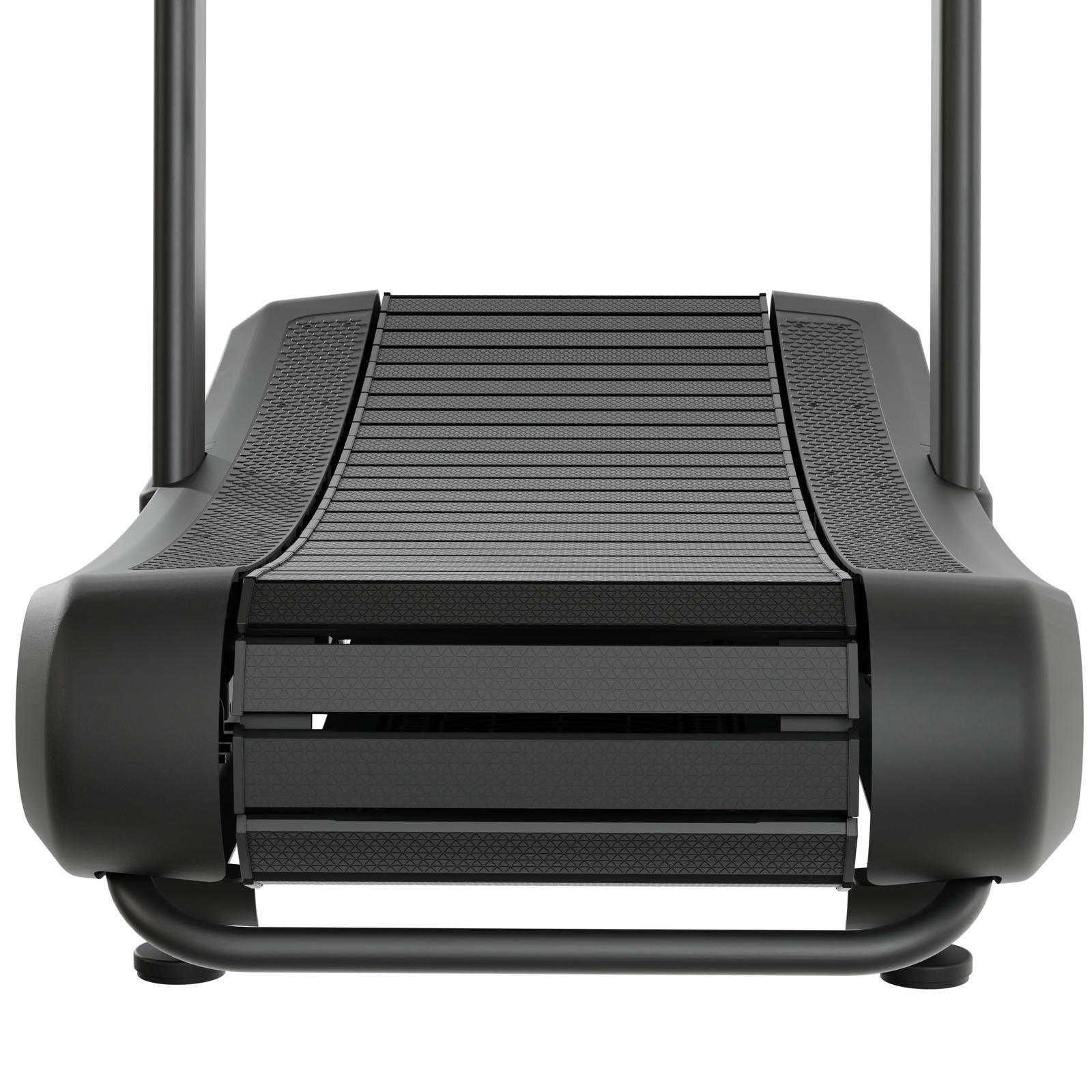 Zakrzywiona konstrukcja pasa biegowego dopasowuje się do naturalnego ruchu stóp, co pozwala na płynne przejście od marszu do sprintu. Brak napędu elektrycznego sprawia, że bieżnia reaguje natychmiast na zmianę tempa, dzięki czemu możesz wykonywać krótkie, intensywne interwały lub długie sesje wytrzymałościowe z zachowaniem pełnej kontroli. To sprzęt, który pozwoli Ci trenować z maksymalnym zaangażowaniem i skutecznością.