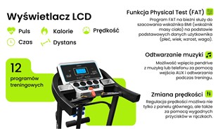 | Funkcja pauzy |  wprowadzona w 2025 (bieżnia kupiona wcześniej jej nie posiada) - możliwość tymczasowego zatrzymania treningu bez utraty dotychczasowych postępów |