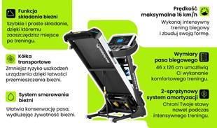 | Wymiary pasa biegowego | 126 x 46 cm |