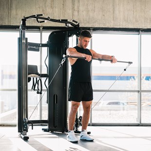 Z Ares Pro wykonasz niemal każdy ruch. Ustaw bloczki w różnych wysokościach, wybierz uchwyty i rozpocznij: podciągania na drążku multi-grip, wyciskania, przysiady i martwe ciągi z linką, ściągania górne i dolne, prace na mięśnie brzucha i stabilizację - to tylko część możliwości. Dwa stosy po 90 kg każdy gwarantują intensywność i rozwój, niezależnie czy trenujesz indywidualnie czy prowadzisz zajęcia grupowe.
