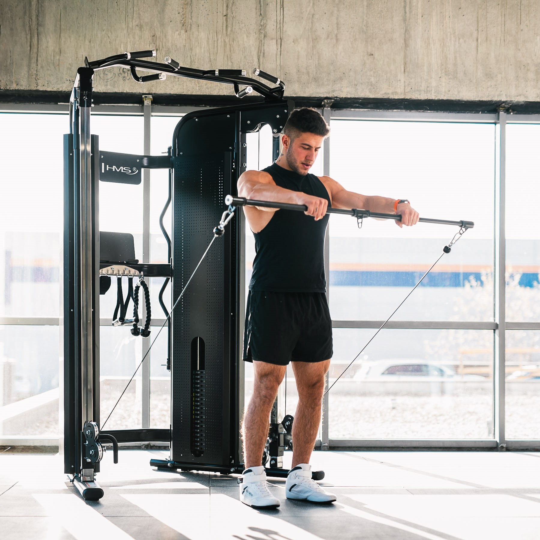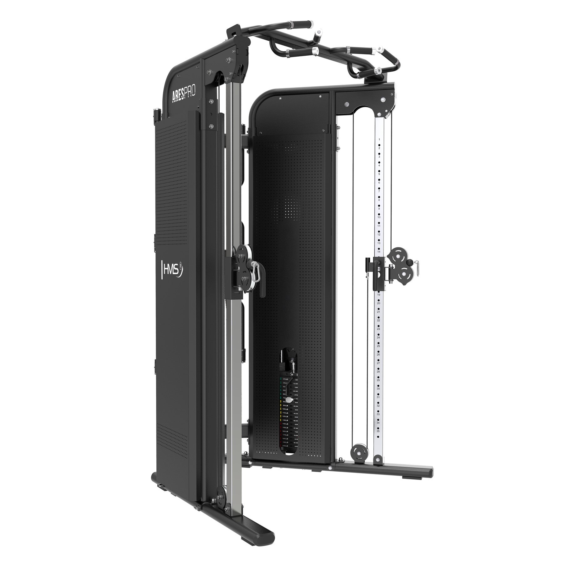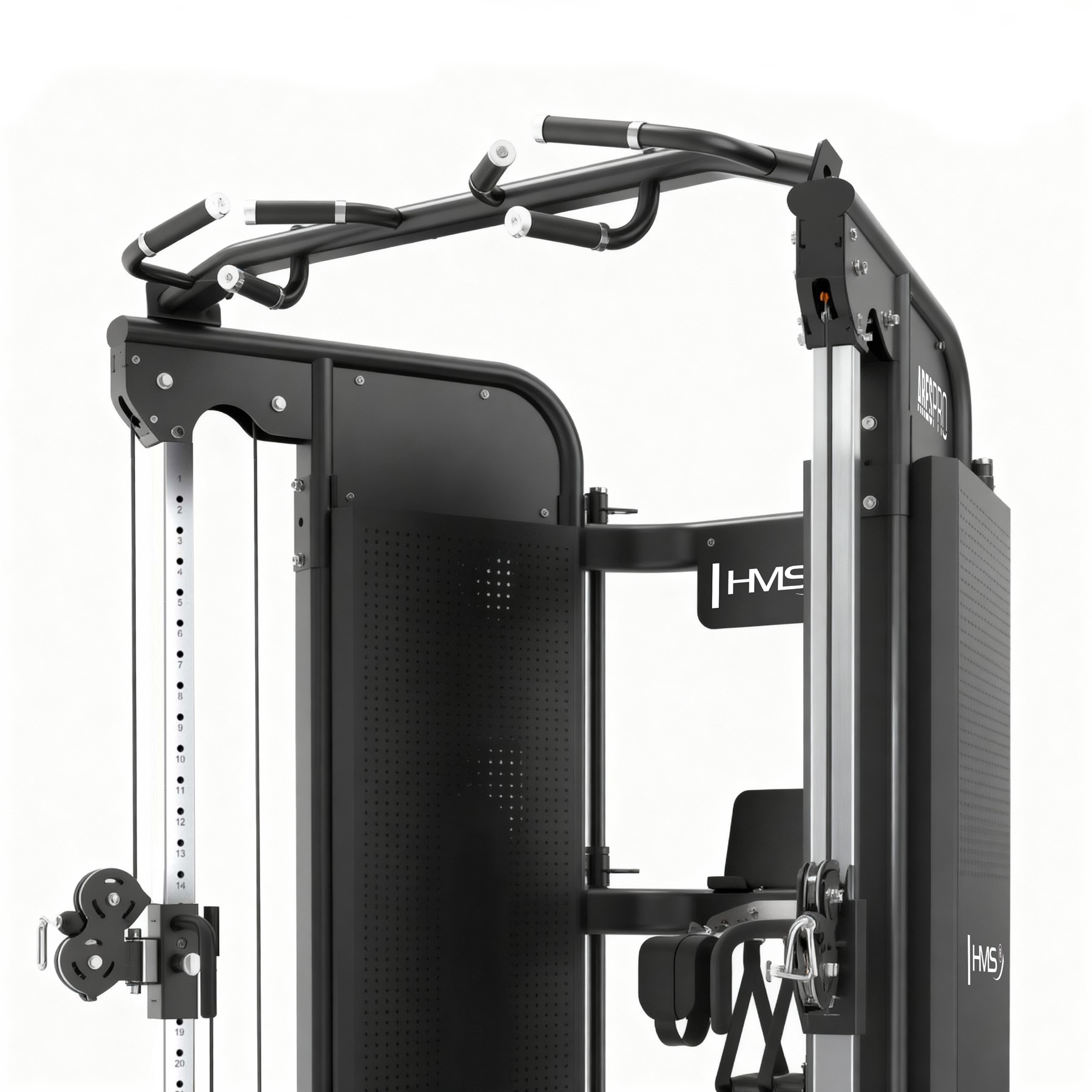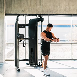 HMS Ares Pro Commercial to najwyższej klasy brama treningowa, zaprojektowana po to, by zastąpić wiele maszyn jednym mocnym stanowiskiem. Idealna dla klubów fitness, studiów treningu personalnego, a także wymagających użytkowników domowych, którzy oczekują sprzętu „na lata”. Dzięki połączeniu wyciągu, stacji wielofunkcyjnej oraz solidnego stosu obciążeń, Ares Pro umożliwia pełny zakres ćwiczeń - od siły maksymalnej po trening funkcjonalny.