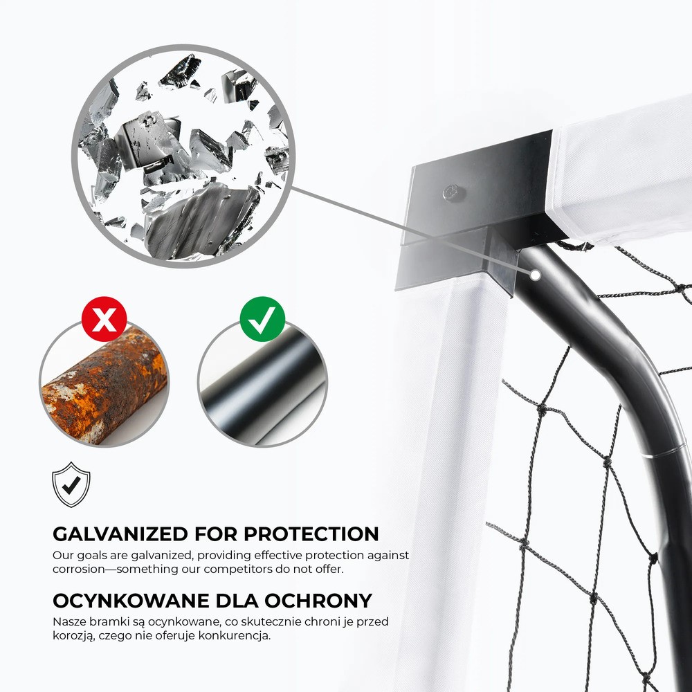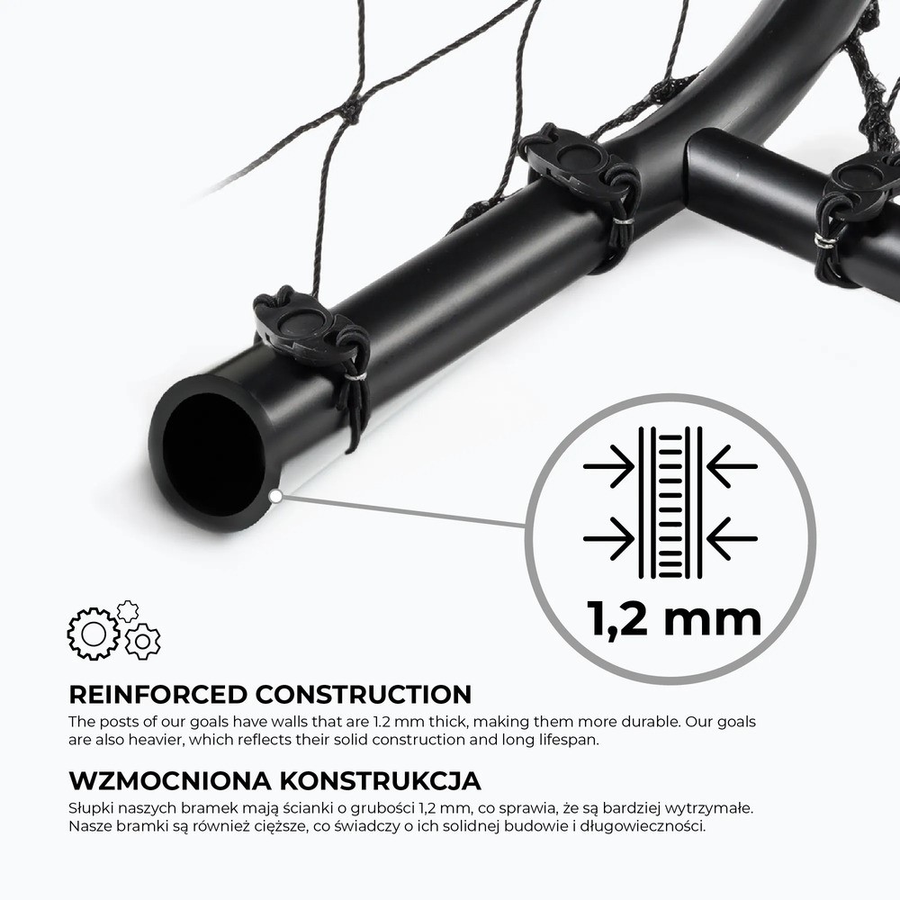 Podczas dynamicznych akcji ważne jest jedno - sprzęt musi być pewny. Wzmocniona konstrukcja oraz system mocowania do podłoża sprawiają, że bramka pozostaje stabilna nawet przy intensywnej grze. To bezpieczeństwo i komfort, które pozwalają skupić się wyłącznie na piłce.