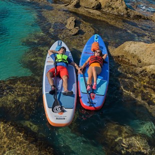 | Na desce umieszczono cztery D-ringi do zamocowania siedziska kajakowego, co pozwala na szybką zmianę sposobu użytkowania z pozycji stojącej na siedzącą. Gumowe linki cargo umieszczone w przedniej części deski umożliwiają przewożenie bagażu, a specjalnie zaprojektowane oczko w szerokiej gumie cargo to wygodne miejsce na butelkę z napojem. Dodatkowo deska wyposażona jest w uchwyt na wiosło, który umożliwia jego wygodne przechowywanie, kiedy nie jest używane. |