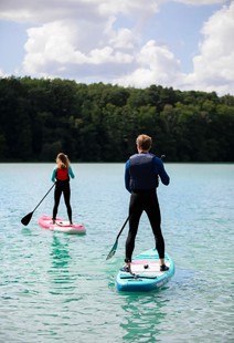 | Zawartość opakowania | Deska SUP Statecznik, Leash (5 mm, 300 cm długości, wyposażony w 2 przeguby) Siedzisko kajakowe Zestaw naprawczy (klucz do zaworu, łatki) – zestaw nie zawiera kleju Plecak (45 x 25 x 92 cm) Aluminiowe, 3-częściowe, regulowane wiosło 2w1 165-225 cm (SUP/kajak), Pompka typu 2-way (pompowanie i spuszczenie powietrza) |