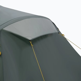 Namiot został wyposażony w małe okna po bokach wejścia oraz praktyczny daszek nad wejściem, który zwiększa komfort korzystania z namiotu podczas gorszej pogody. Okna pomagają doświetlić wnętrze w ciągu dnia, a możliwość ich zasłonięcia daje więcej prywatności i pozwala lepiej dopasować warunki do własnych potrzeb.