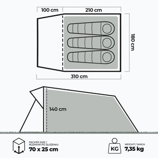 | Wymiary produktu | 310 x 180 x 140 cm |