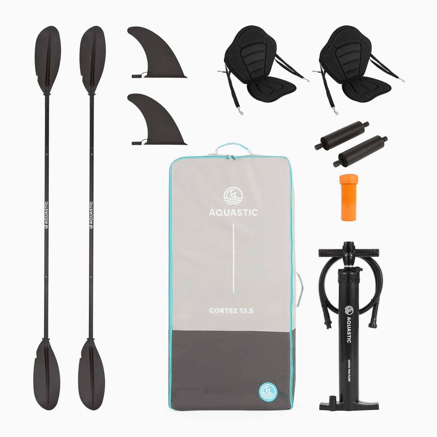 Dużym atutem modelu Aquastic Cortez 13'5" jest także kompletne wyposażenie. W zestawie znajdziesz wszystko, czego potrzeba, aby szybko rozpocząć wodną przygodę - od wioseł i siedzisk po pompkę, stateczniki i plecak transportowy. Dzięki temu możesz skupić się wyłącznie na planowaniu kolejnej wyprawy.