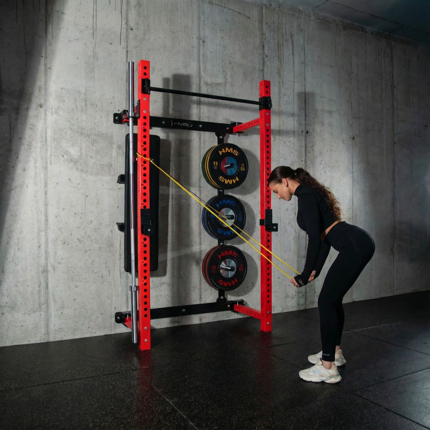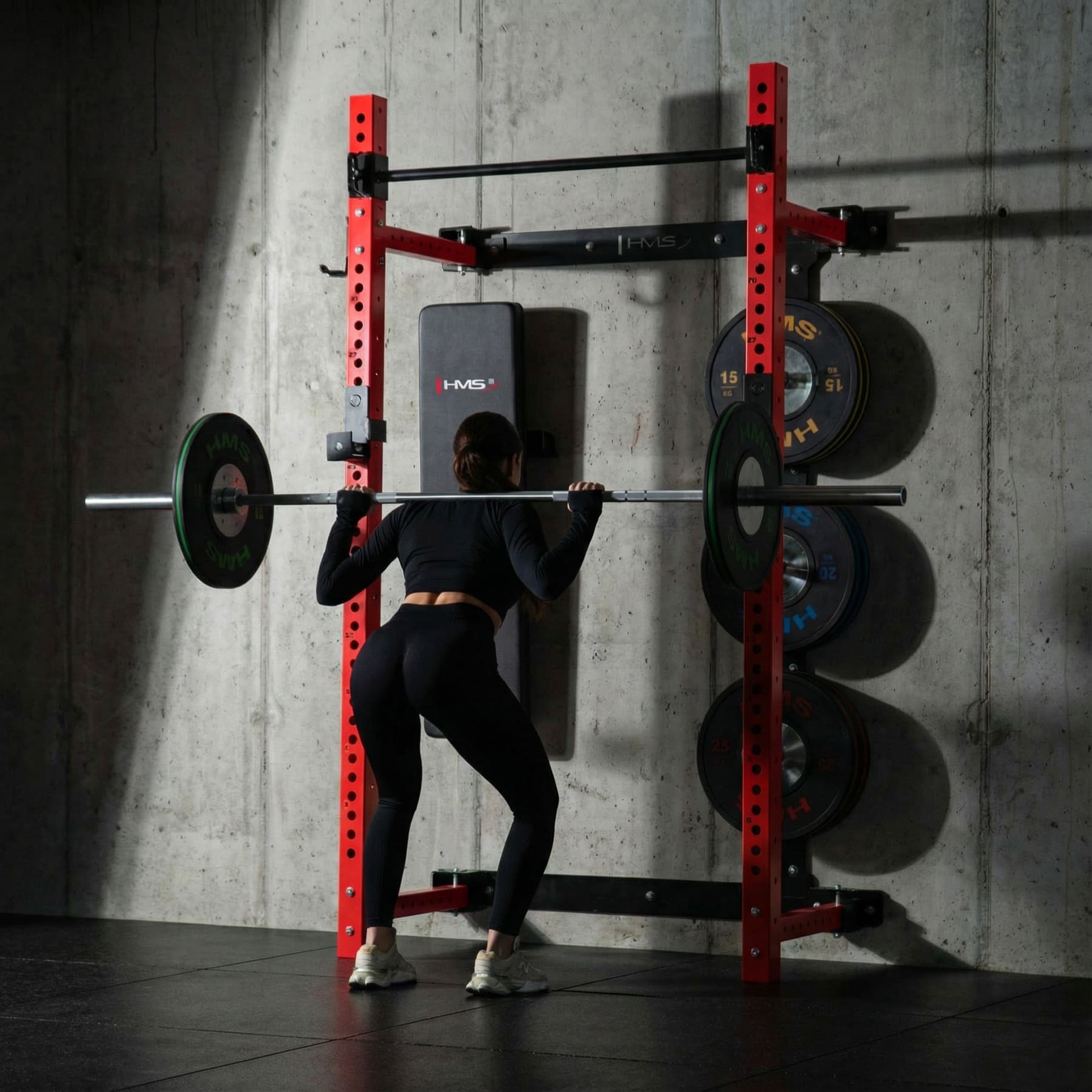 Solidna stalowa konstrukcja klatki KLT34 HMS Fitness została zaprojektowana z myślą o intensywnym treningu siłowym: