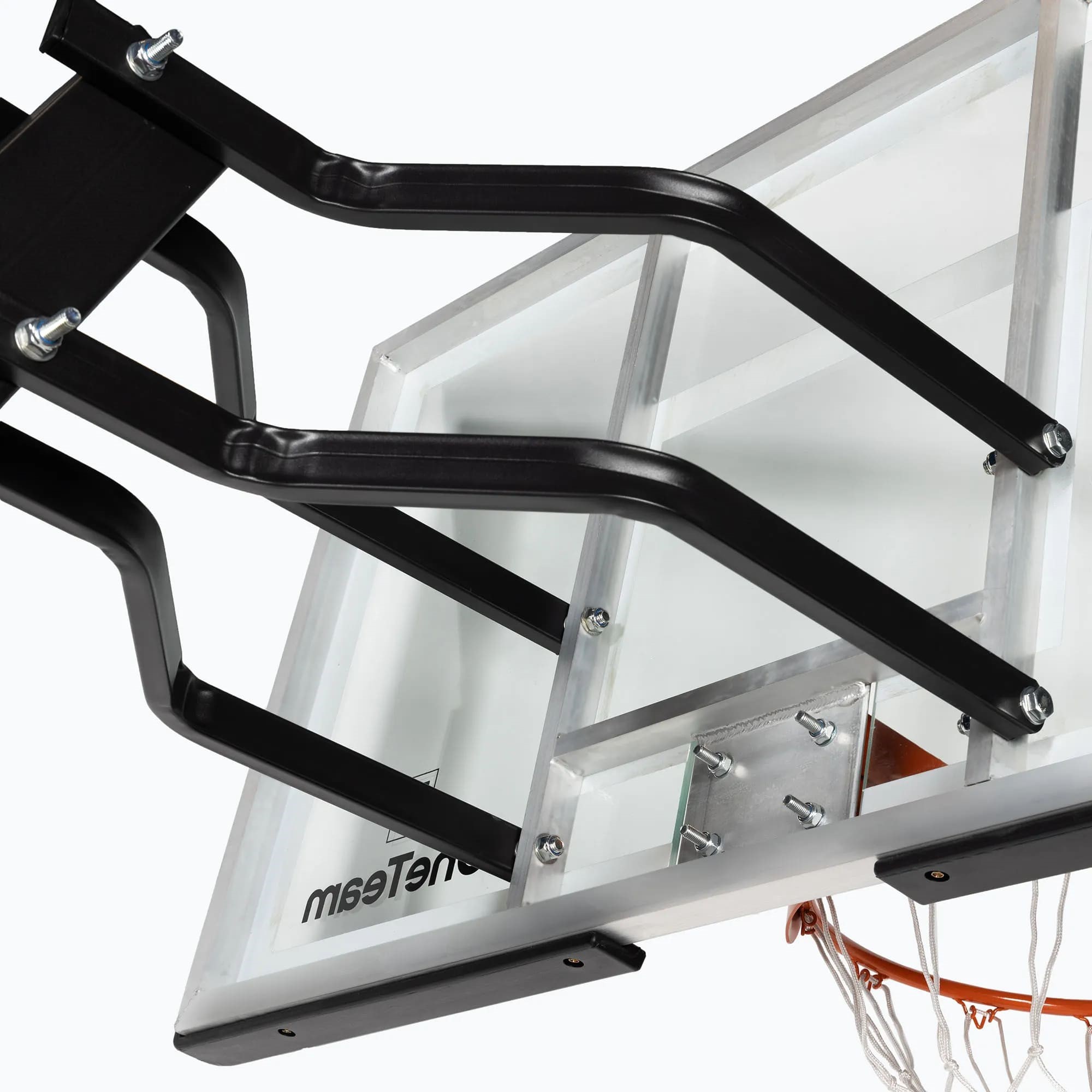 Kosz wyposażono w tablicę o wymiarach 140 × 82 cm wykonaną z przejrzystego szkła hartowanego, które wyróżnia się wysoką odpornością i odpowiednią sztywnością. To rozwiązanie inspirowane profesjonalnymi boiskami, dzięki któremu gra staje się bardziej realistyczna i satysfakcjonująca.
