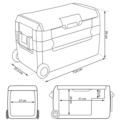 | W zestawie | turystyczna lodówka kompresorowa zasilacz AC z adapterem – długość 1,8 m zasilacz do gniazda zapalniczki – długość 2 m deska do krojenia instrukcja |