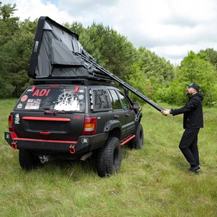 Choć namiot dachowy Kadva Tardis oferuje pełnoprawną przestrzeń do spania, po złożeniu zachowuje rozsądne gabaryty transportowe 120 x 160 x 25 cm. Waga 68 kg oraz przemyślane parametry montażowe ułatwiają dopasowanie namiotu do wielu samochodów osobowych i terenowych - oczywiście przy zachowaniu zaleceń producenta dotyczących nośności dachu. Na plus działa również podłoga wykonana z aluminiowych paneli izolacyjnych w technologii „plastra miodu”, która łączy niską wagę z wysoką sztywnością i trwałością. To rozwiązanie, które dobrze wpisuje się w potrzeby osób szukających sprzętu praktycznego, nowoczesnego i przygotowanego do częstych wyjazdów.