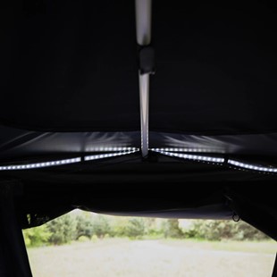 W przypadku wyposażenia outdoorowego to właśnie szczegóły często decydują o tym, czy dany model po prostu „działa”, czy naprawdę podnosi komfort wyjazdu. W Kadva Tardis znajdziesz m.in. oświetlenie LED zasilane przez USB, które przydaje się wieczorem, podczas pakowania, organizowania wnętrza albo po prostu w trakcie spokojnego odpoczynku po całym dniu. Dodatkowe kieszenie i schowki pomagają lepiej zorganizować przestrzeń, dzięki czemu nawet na krótkim postoju wszystko ma swoje miejsce. To namiot, który nie tylko dobrze wygląda na aucie, ale przede wszystkim ma sens w codziennym użytkowaniu.