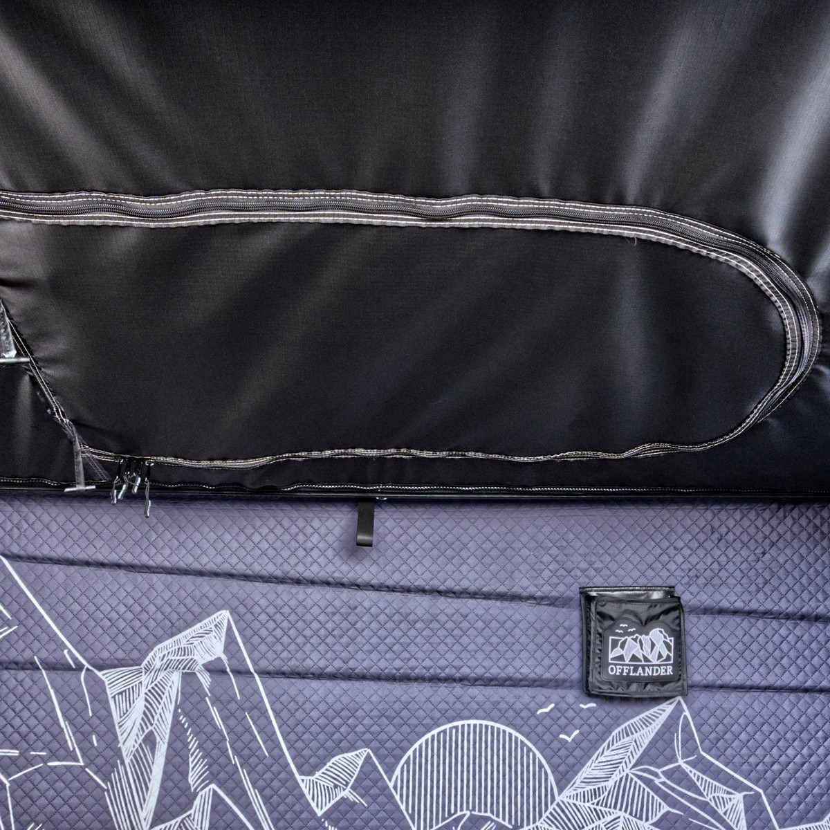 W środku znajduje się wykonany z pianki Memory Foam materac o wymiarach 200 × 190 cm i grubości 5 cm. Jest to wystarczająca grubość i powierzchnia, żeby zapewnić komfortowy sen i odpoczynek nawet czterem osobom. Leżąc na nim, podziwiać możesz rozgwieżdżone nocne niebo. Okno dachowe, wedle uznania i temperatury na zewnątrz, możesz całkowicie zamknąć, otworzyć lub zasłonić jedynie siatką, która ochroni Cię przed niechcianymi insektami w letnie wieczory. W gorące dni możesz z kolei całkowicie ściągnąć górny tropik.