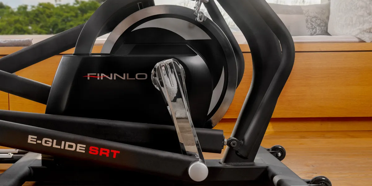 W FINNLO E-Glide SRT precyzyjne łożysko kulkowe zostało wyposażone w podwójne łożysko z przegubem, aby zapewnić jeszcze większy komfort treningu. Razem z 20-kilogramowym kołem zamachowym gwarantuje to optymalną i cichą pracę urządzenia. Orbitrek jest napędzany paskiem klinowym, a dzięki magnetycznemu systemowi hamowania możliwe jest dokładne ustawienie intensywności oporu. Wentylator i wejście AUX (do słuchania muzyki z komórki lub Ipoda) stanowią uzupełnienie wyposażenia E-Glide SRT.