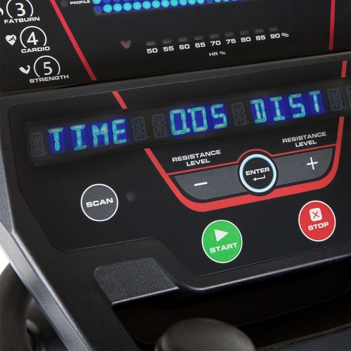 Orbitrek został skonstruowany w taki sposób, że wytrzymuje częste sekwencje treningowe. Koło zamachowe o wadze 14 kg i precyzyjne łożyska kulkowe gwarantują harmonijny bieg i dbają o wysoki komfort treningu. Sercem trenażera jest wysokiej jakości komputer treningowy z dużym wyświetlaczem LED. Wszystkie dane treningowe są przejrzyście wyświetlane, a wszystkie programy można wybrać bezpośrednio przyciskając jeden przycisk. Obojętnie czy trening spalania tłuszczu czy trening czasowy – dzięki swoim programom orbitrek zapewnia zróżnicowany trening cardio. Po zakończonym treningu urządzenie wystawia ocenę.