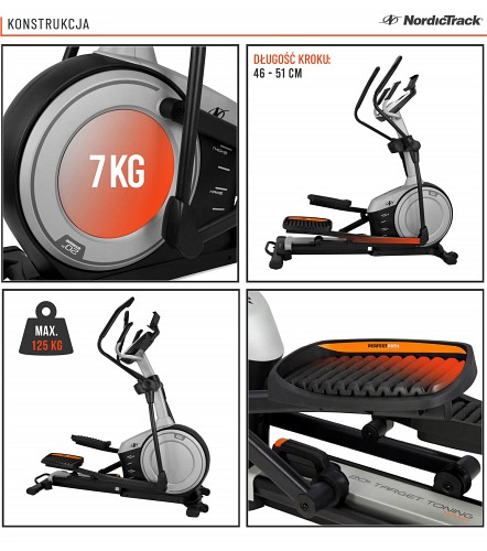 Solidny, wielofunkcyjny, multimedialny - te słowa dokładnie opisują orbitrek renomowanej marki NordicTrack C5.5. Nowoczesne funkcje i innowacyjna konstrukcja urządzenia sprawi, że osiagniesz na nim każdy wyznaczony cel. Wystarczy odpowiednie podejście do planu treningowego, aby wykształcić wymarzoną sylwetkę, poprawić swoją kondycję, a także wzmocnić swoje mięśnie.