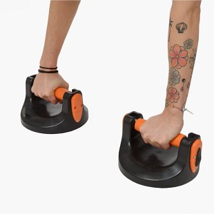 PU08 HMS to przyrząd do ćwiczeń, łączący w sobie funkcję podpórek do wykonywania pompek z twisterem. Jego unikalna konstrukcja zapewnia precyzję ruchów oraz stabilną pozycję podczas treningu. Aluminowe uchwyty, które pokryto antypoślizgowym materiałem, pozwolą wzmocnić muskulaturę ramion i tułowia.