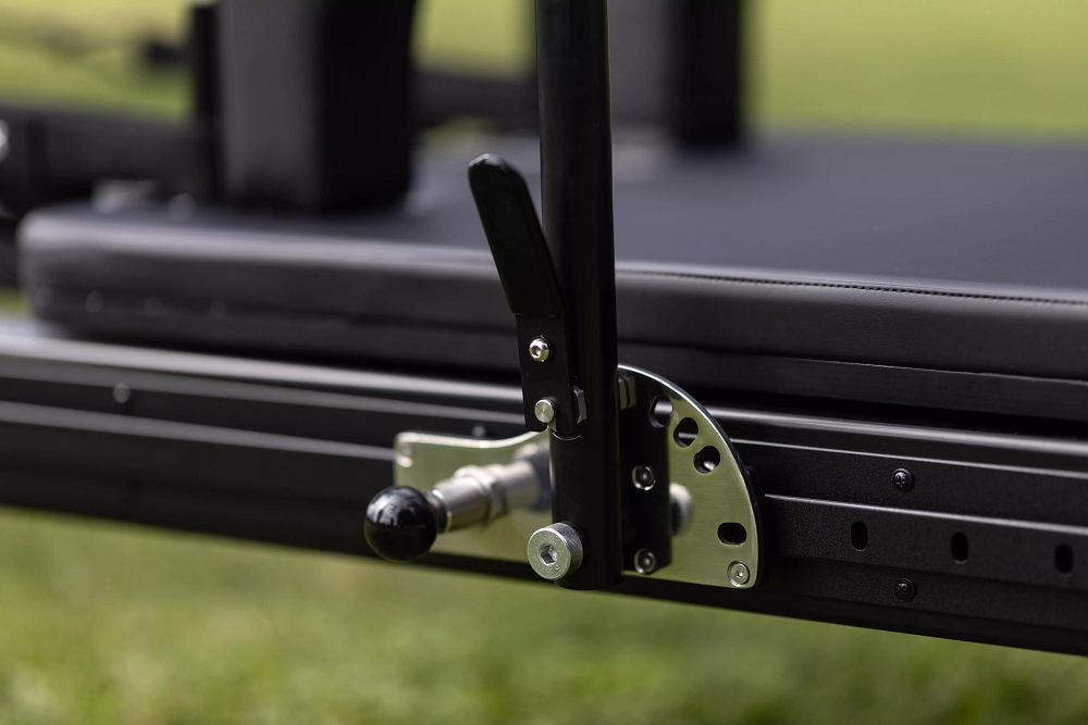 Reformer PTX8000 daje pełną personalizację. Drążek na stopy z 5 kątami nachylenia i 19 pozycjami poziomymi, 6 sprężyn o różnej sile oporu i automatyczny system lin sprawiają, że każdy trening możesz dopasować idealnie do swojego poziomu, celu i stylu pracy. Od precyzyjnych ćwiczeń mobilizacyjnych po intensywny trening - PTX8000 zawsze odpowiada Twoim potrzebom.