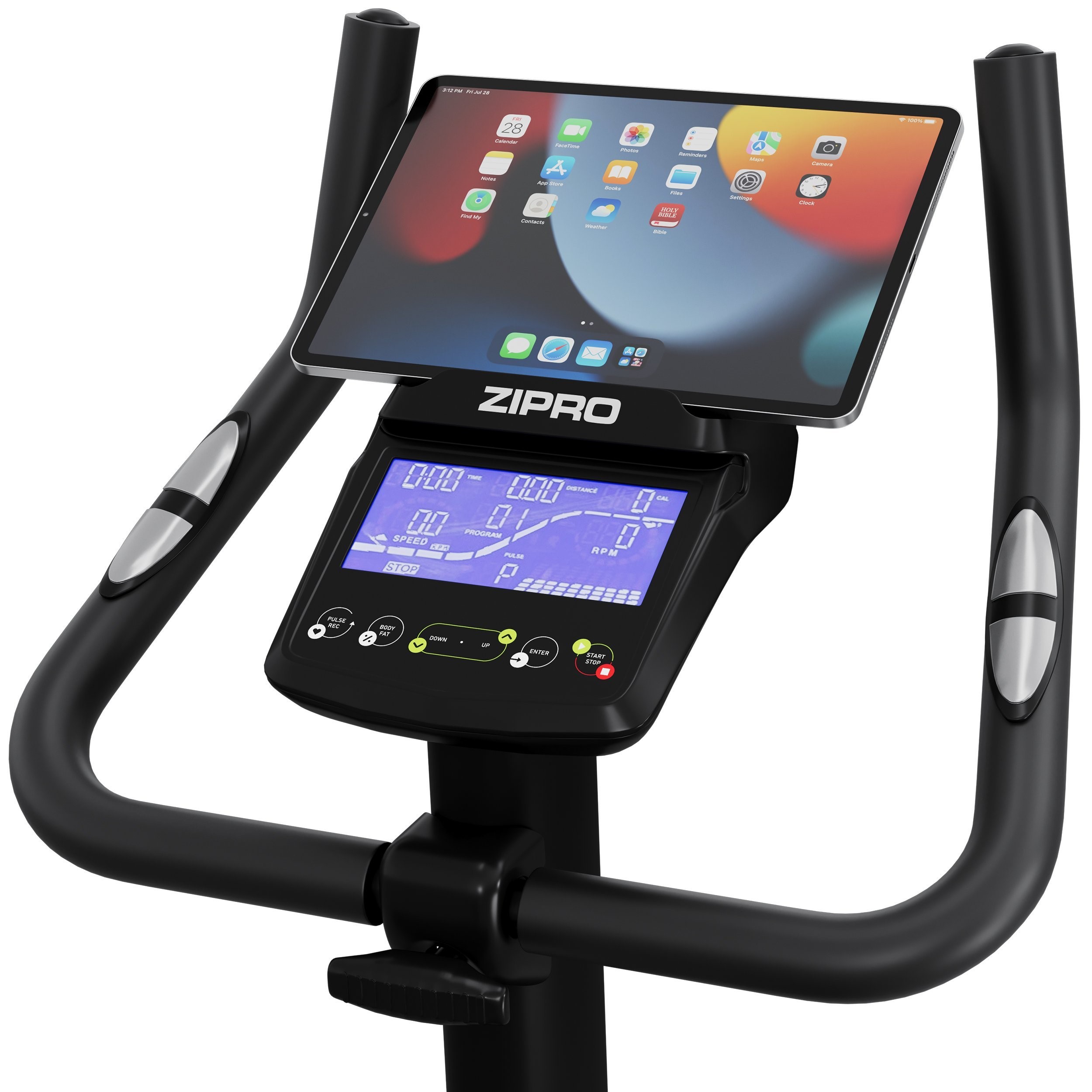 Zipro Rave wyposażono w specjalny uchwyt na telefon lub tablet, który możesz umieścić nad ekranem konsoli. Raz włożone w uchwyt urządzenie jest w pełni stabilne i nie zasłania wyświetlanych postępów treningu. Połączenie przyjemnego z pożytecznym jeszcze nigdy nie było tak łatwe.