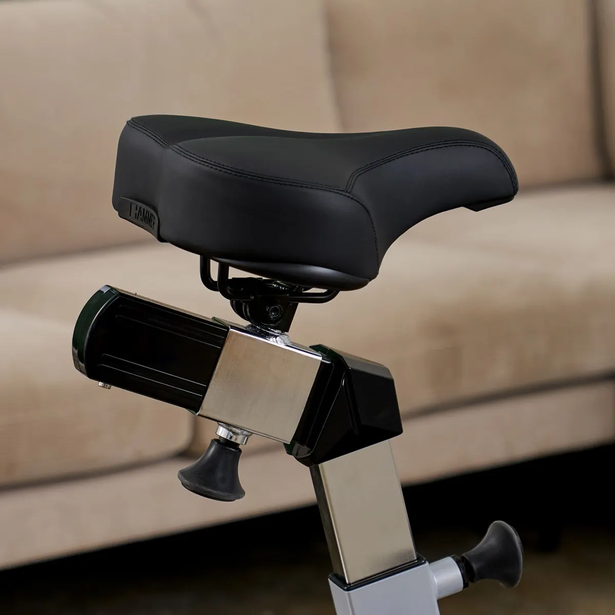 Rower został zaprojektowany z naciskiem na ergonomię i wygodę, co ma ogromne znaczenie przy regularnym treningu. Regulowane siodełko umożliwia precyzyjne dopasowanie pozycji do wzrostu użytkownika, a stabilna konstrukcja ramy gwarantuje pewność ruchu nawet przy wyższych poziomach oporu. Dzięki temu trening jest komfortowy, a obciążenie stawów pozostaje na bezpiecznym poziomie.