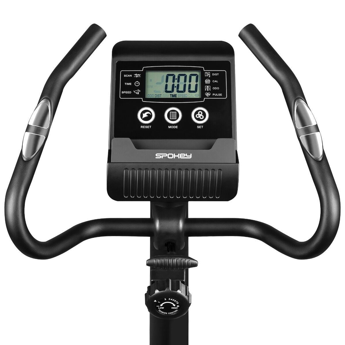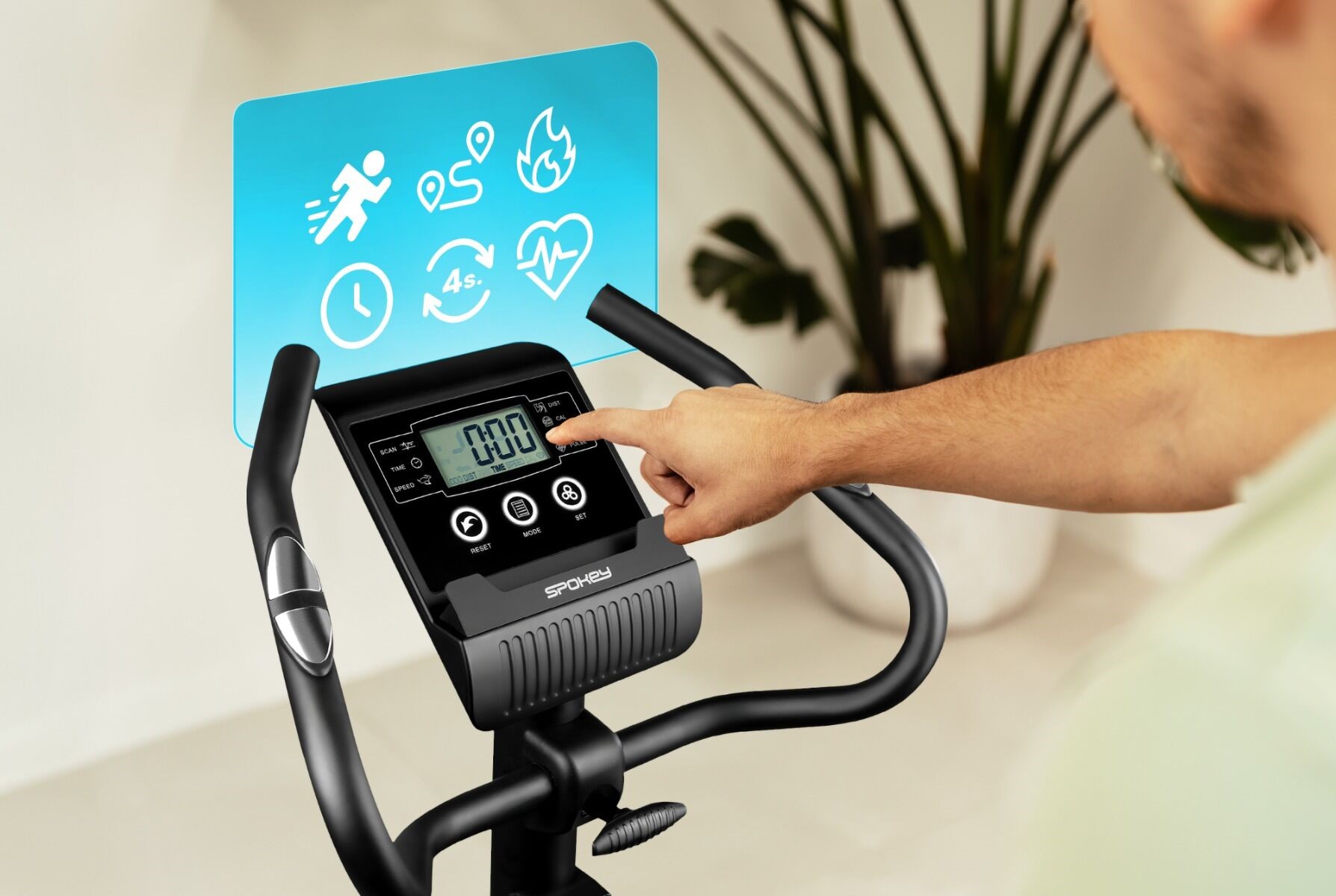 Spokey DUST to nowoczesny rower treningowy, który pozwala cieszyć się komfortowym treningiem bez wychodzenia z domu. Dzięki 8-stopniowej, ręcznej regulacji oporu oraz płynnej pracy magnetycznego koła zamachowego o wadze 8 kg, dopasujesz intensywność ćwiczeń do swoich celów – od lekkiego rozruchu po wymagający trening cardio. Ergonomiczne siodełko regulowane w pionie i poziomie oraz regulowany kąt nachylenia kierownicy zapewniają wygodną pozycję dla każdego użytkownika. Wyświetlacz LCD prezentuje wszystkie kluczowe dane — czas, prędkość, dystans, kalorie, puls i całkowity przebieg — motywując do systematyczności i postępów.