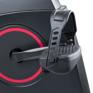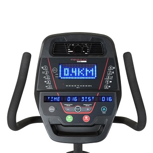 Obciążenie zgodnie z normami DIN EN 957 jest regulowane w zakresie 25-200 Watt. Możliwy jest również trening zorientowany na tętno, które może być wygodnie mierzone za pomocą czujników dotykowych lub przez zintegrowany czujnik tętna do opcjonalnie dostępnego pasa telemetrycznego. Wszystkie dane treningowe są przejrzyście wyświetlane na dużym wyświetlaczu LED. Programy treningowe zapewniają różnorodność ćwiczeń. Przed rozpoczęciem treningu urządzenie może przeprowadzić test fitness. Natychmiast zostaną rozpoznane indywidualne postępy, które będą dodatkową motywacją. Zintegrowany generator zapewni energię komputerowi treningowemu, wentylatorowi i elektromagnetycznym hamulcom. Dzięki temu można trenować w różnych miejscach, niezależnie od źródła energii i tym samym dbać o ekologię.