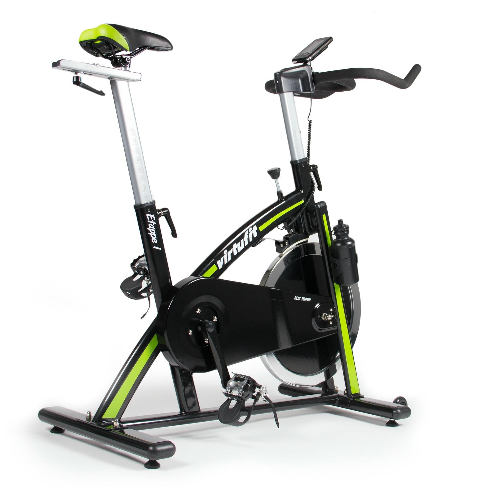 Rower spinningowy Etappe 1 został zaprojektowany z myślą o długotrwałym użytkowaniu i stabilności nawet podczas intensywnych treningów. Waży 41,5 kg i przeznaczony jest dla użytkowników o wadze do 135 kg. Napęd paskowy zapewnia cichą i płynną pracę, a pedały z noskami gwarantują pewne oparcie dla stóp. Rower wyposażono również w hamulec bezpieczeństwa, regulowane nóżki poziomujące oraz uchwyt na bidon, co zwiększa komfort i bezpieczeństwo podczas ćwiczeń.