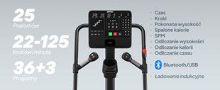 Zakres prędkości pozwala przejść od spokojnych, technicznych kroków do dynamicznego treningu interwałowego, który naprawdę czuć w nogach. Głębokie, stabilne stopnie zapewniają naturalny zakres ruchu i pewność kroku nawet przy wysokiej intensywności. Legday daje poczucie wspinania bez kompromisów - mocno, dynamicznie i skutecznie.