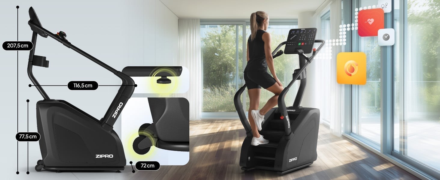 Zipro Legday to sprzęt dla tych, którzy nie szukają półśrodków. Symulacja wejścia po schodach angażuje nogi i pośladki znacznie mocniej niż klasyczne cardio, a każde tempo to odczuwalna praca mięśni. To maszyna stworzona do budowania siły, wytrzymałości i spalania kalorii w krótszym czasie - idealna do domu.