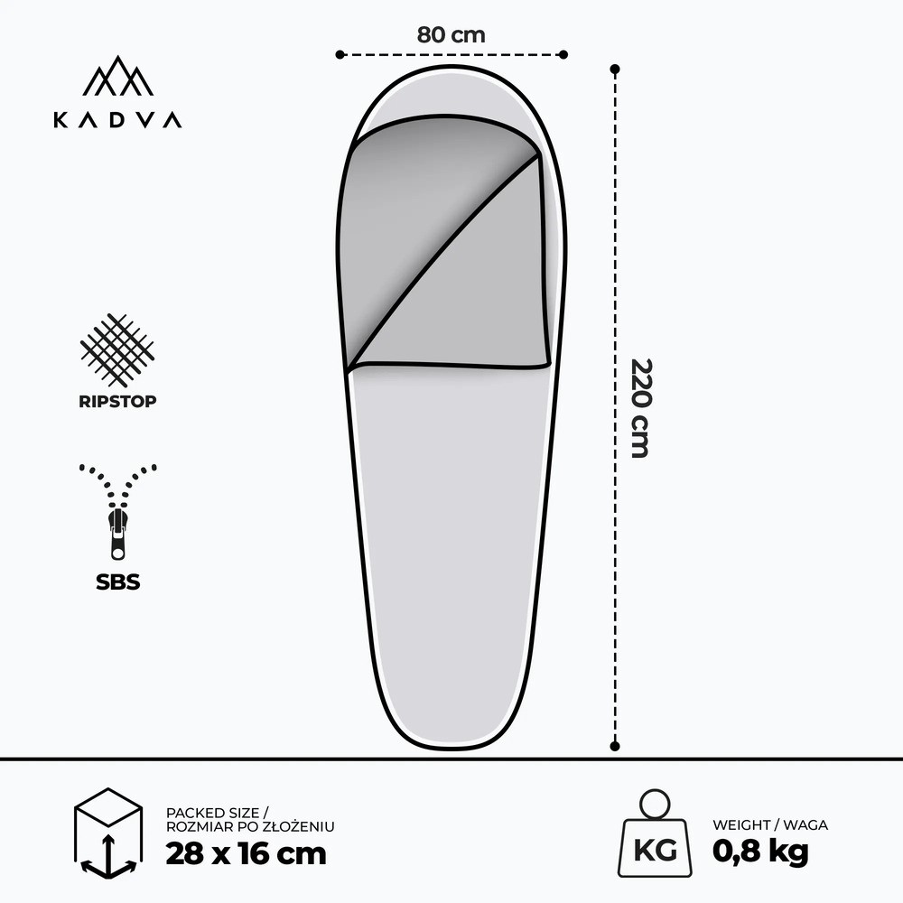 Dobry śpiwór to taki, o którym myślisz dopiero wtedy, gdy naprawdę go potrzebujesz. Śpiwór KADVA Light 800 R został stworzony właśnie po to, by zapewnić komfortowy sen podczas cieplejszych nocy, nie obciążając przy tym plecaka ani bagażu. To model idealny na camping, trekking, schronisko, wyjazd pod namiot czy spontaniczny weekend poza miastem. Lekki, praktyczny i gotowy na outdoorowe przygody.