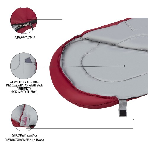 | Wymiary śpiwora | Długość: 175+30 cm Szerokość: 75 cm |