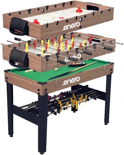 Ten stół został zaprojektowany tak, aby szybko i wygodnie zmienić planszę i wybrać jedną z 3 gier. Zamiast inwestować w oddzielne stoły do każdej gry, możesz cieszyć się piłkarzykami, bilardem i cymbergajem w jednym kompaktowym zestawie.
