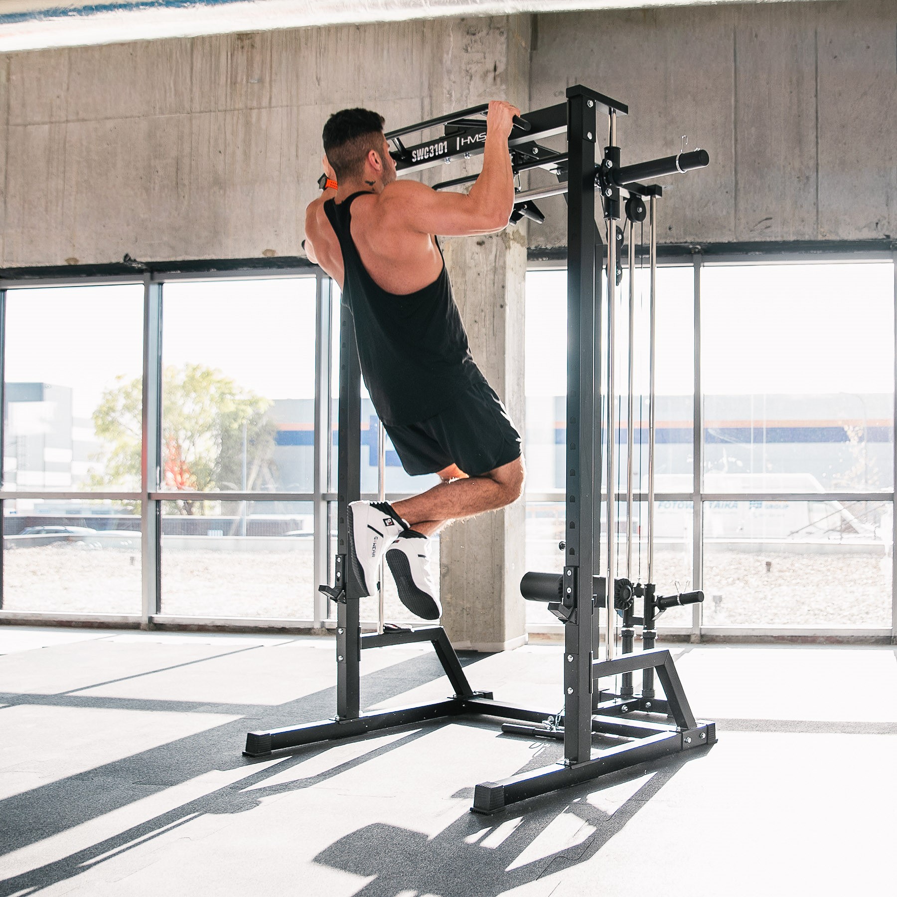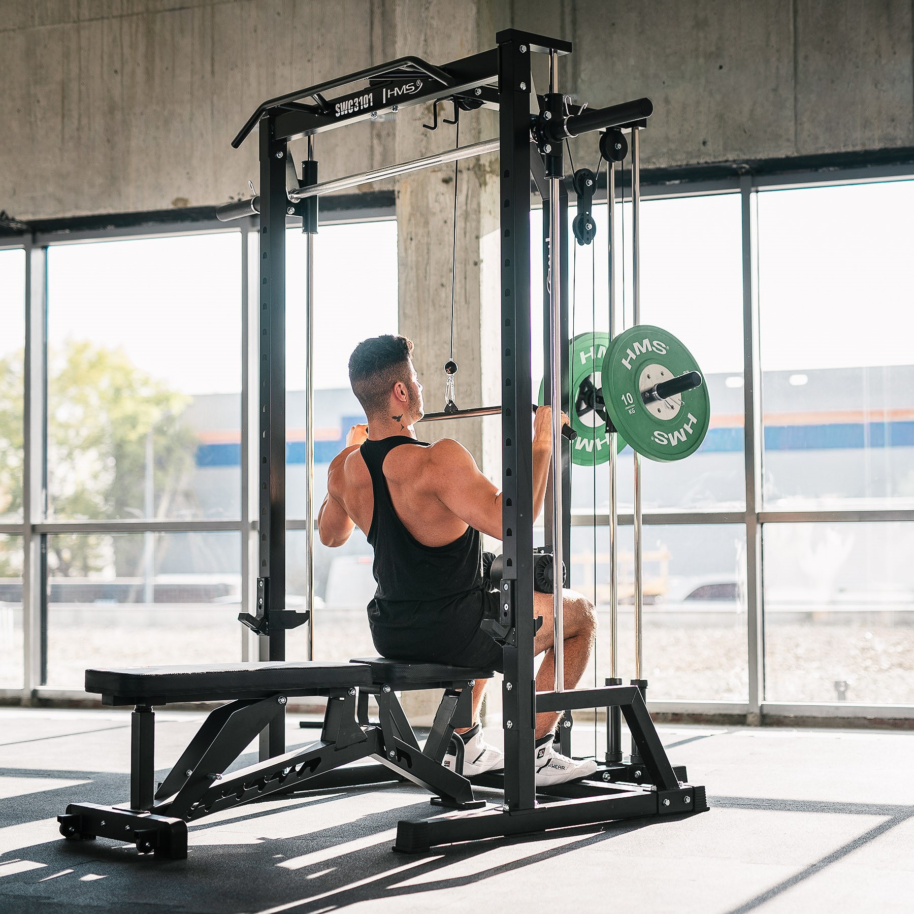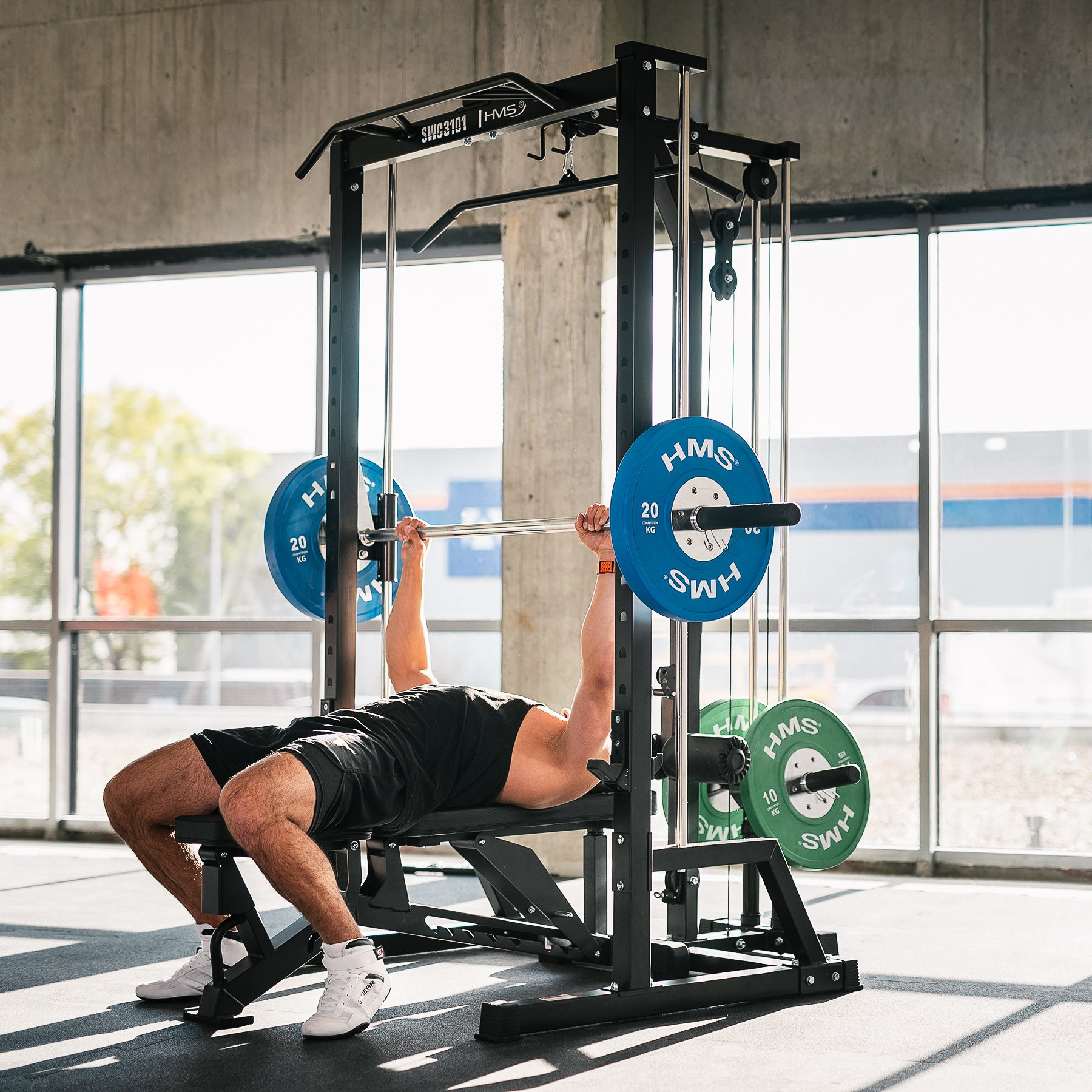 HMS SWC3101 to suwnica Smitha połączona z wyciągiem na wolny ciężar - sprzęt, który zamiast ograniczeń daje Ci pełną wolność. Jeśli szukasz jednego urządzenia, które pozwoli trenować siłę, masę mięśniową i pracować nad sylwetką kompleksowo, to właśnie to. SWC3101 to kompromis między siłownią a domowym workoutem: solidna konstrukcja, przemyślane rozwiązania i pełna funkcjonalność, której wymagasz od sprzętu półprofesjonalnego.