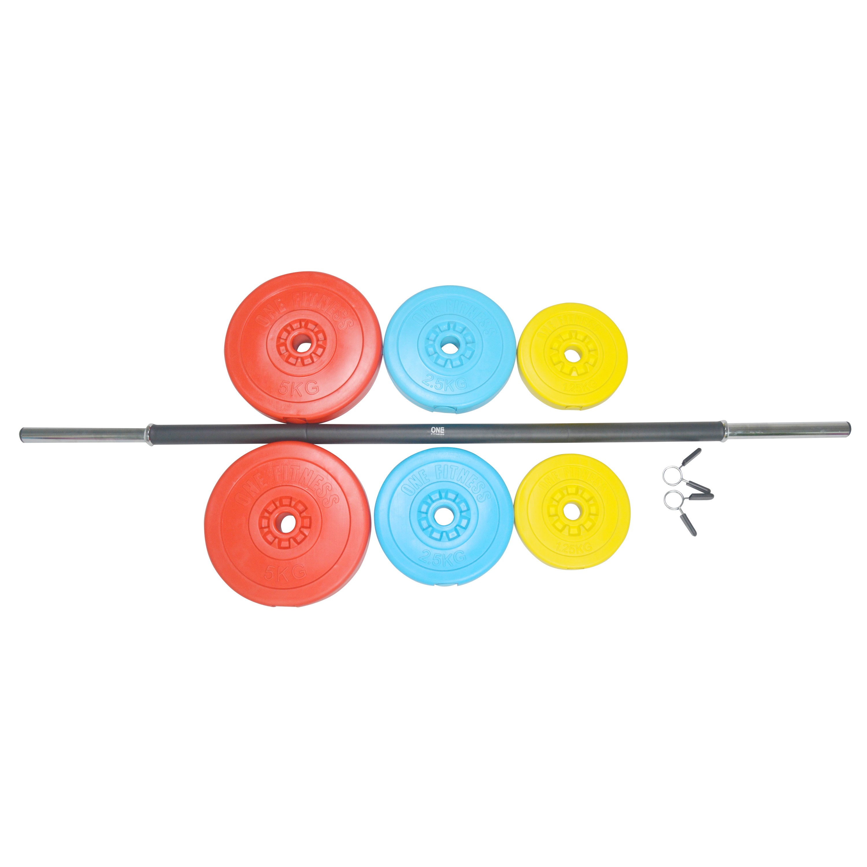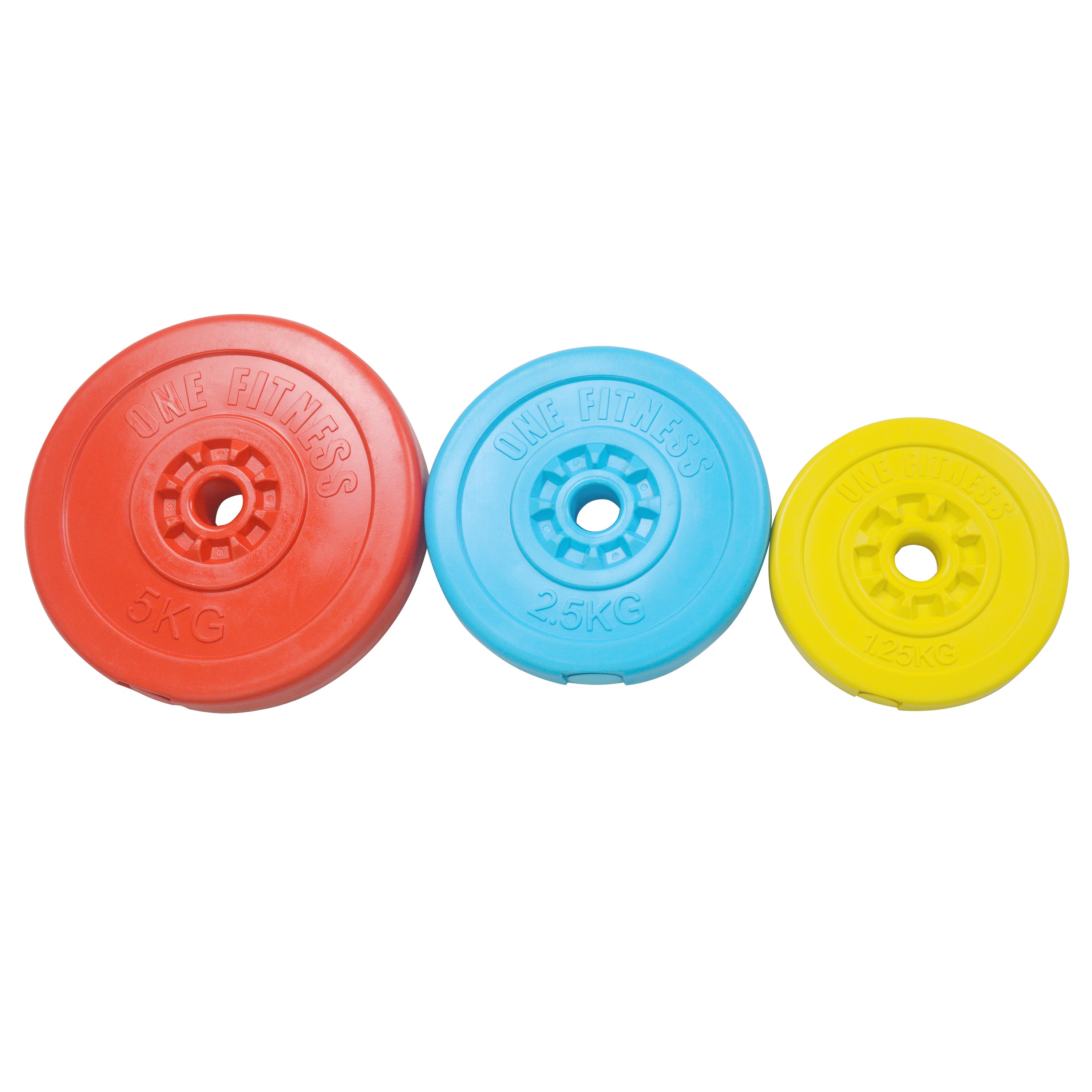 | Waga talerzy | 2*5kg czerwony; 2*2,5kg niebieski; 2*1,25kg żółty |