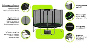 | Stalowa, galwanizowana, ocynkowana konstrukcja - zapewnia wysoką wytrzymałość trampoliny |