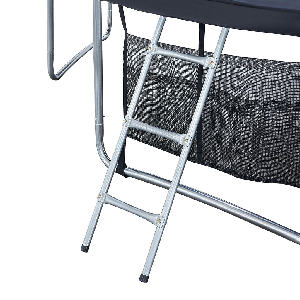 W zestawie znajdziesz wszystko, co potrzebne do szybkiego montażu. Dodatkowo dołączona drabinka ułatwia wchodzenie i schodzenie, a praktyczny worek na buty pomaga utrzymać porządek wokół trampoliny. To detale, które realnie wpływają na komfort użytkowania.