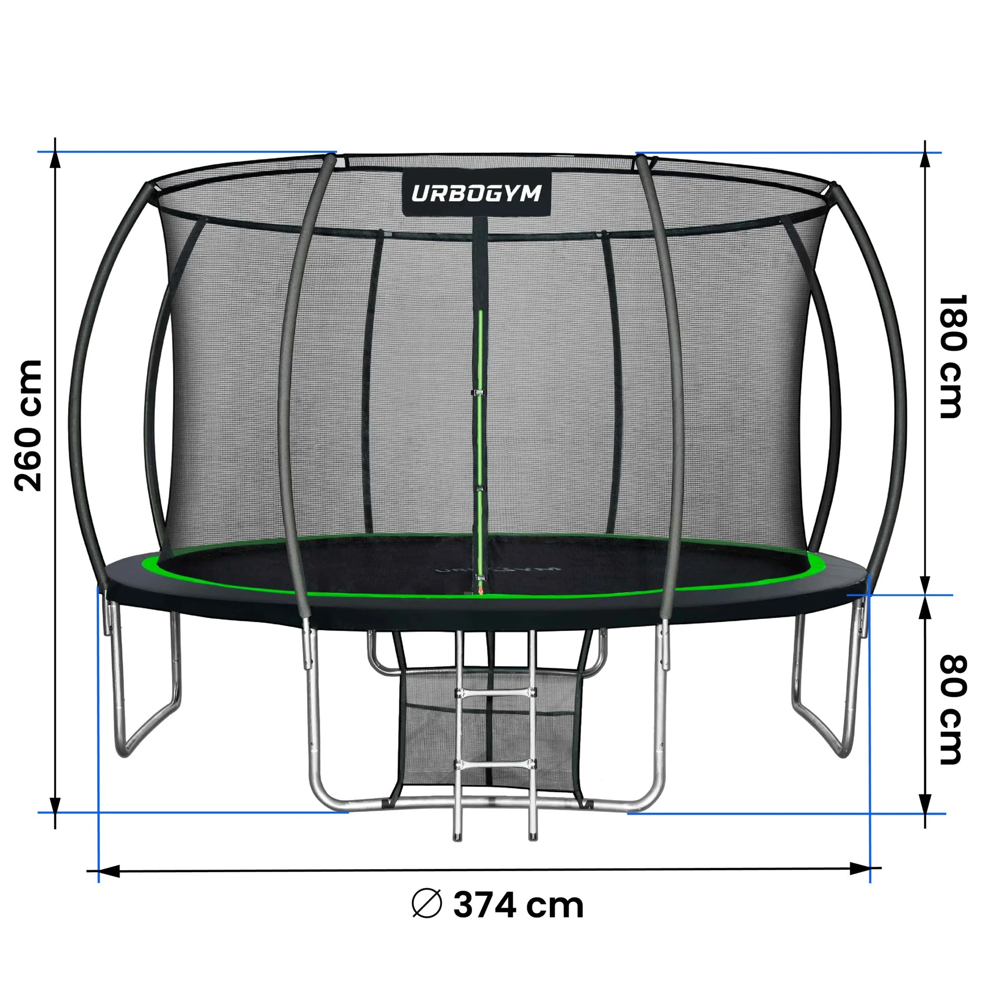 UrboGym Infinity 12ft to duża, bezpieczna i wytrzymała trampolina ogrodowa, która oferuje maksymalną przestrzeń do zabawy. Wewnętrzna siatka, solidna konstrukcja i wysokiej jakości materiały sprawiają, że to doskonały wybór na lata aktywności na świeżym powietrzu.