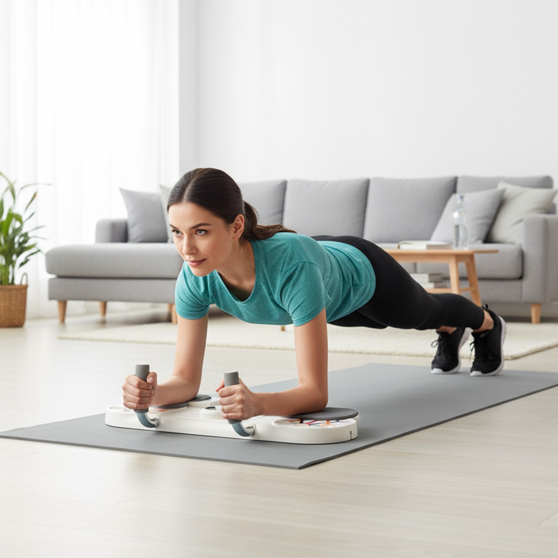 | Szeroka płyta z piankowymi podkładkami stabilizuje plank i ćwiczenia brzucha. |